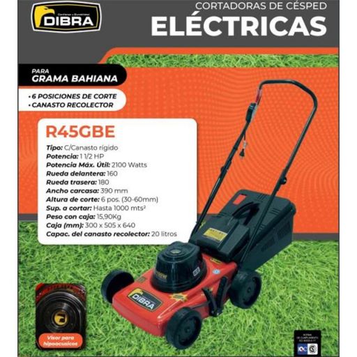 Cortadoras De Césped Eléctrica Dibra 2100w C/Canasto P/Grama Bahiana (R45GBE)